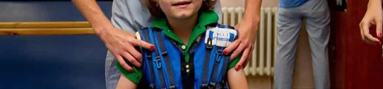 According to Pacific University’s School of Physical Therapy, intensive suit therapy consists of an orthotic suit that includes a hat, knee pads, and specially designed therapeutic shoes. The suit also has rings that allow bungee cord-like ropes to be inserted and adjusted according to the child’s height.